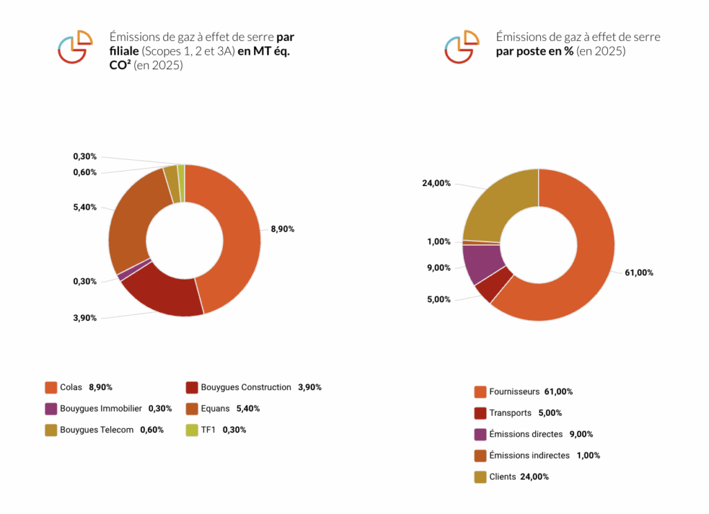 - Les émissions de GES des filiales du Groupe atteignent 21 Mt éq. CO2 en 2024 sur les scopes 1, 2, 3a et 3b (soit une baisse de 1,5 Mt éq Co² par rapport à 2024)